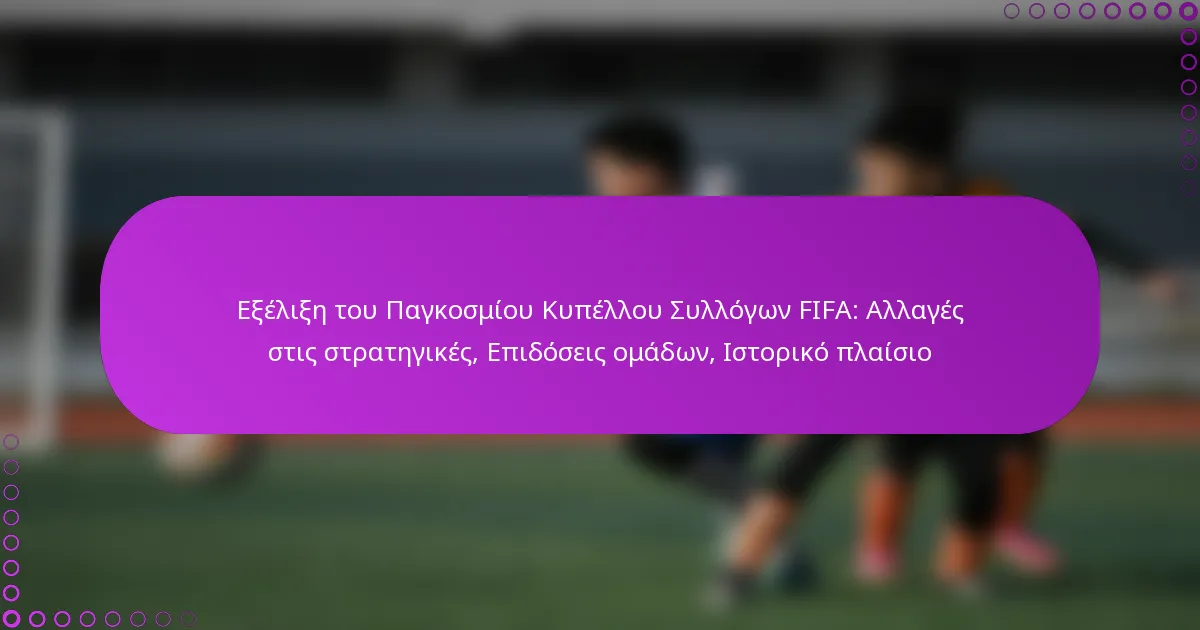 Ποιο είναι το ιστορικό πλαίσιο του Παγκοσμίου Κυπέλλου Συλλόγων της FIFA;