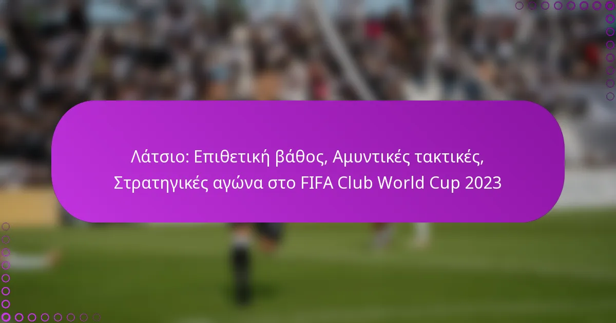 Η απόδοση της Λάτσιο στο FIFA Club World Cup 2023 επηρεάζεται από αρκετούς κρίσιμους παράγοντες, συμπεριλαμβανομένου του επιθετικού βάθους, των αμυντικών σχηματισμών και των στρατηγικών αγώνα. Οι συνεισφορές βασικών παικτών, οι τακτικοί σχηματισμοί και η επίδραση των τραυματισμών παίζουν επίσης σημαντικούς ρόλους στην καθοριστική τους επιτυχία στο γήπεδο.