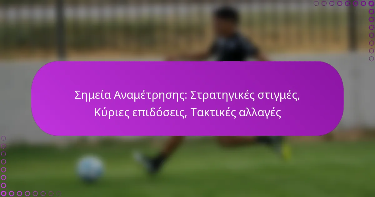 Σημεία Αναμέτρησης: Στρατηγικές στιγμές, Κύριες επιδόσεις, Τακτικές αλλαγές