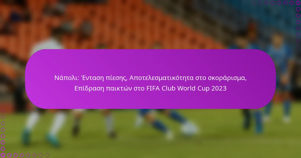 Η ένταση πίεσης της Νάπολι στο FIFA Club World Cup 2023 χαρακτηρίζεται από επιθετικές τακτικές που στοχεύουν στην ταχεία ανάκτηση της κατοχής. Αυτή η προσέγγιση έχει επηρεάσει σημαντικά την απόδοσή τους, επιδεικνύοντας την ικανότητά τους να διαταράσσουν τους αντιπάλους και να δημιουργούν ευκαιρίες για σκοράρισμα.
